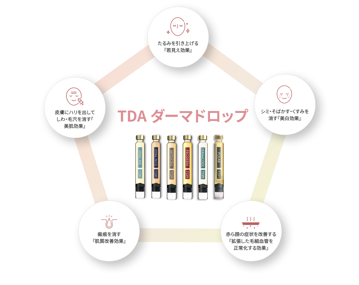 水分、再生、弾力、色素沈着、紅潮など肌の状態と目的に