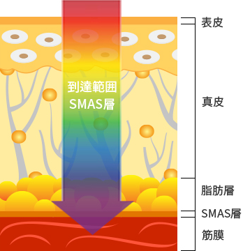 肌のたるみの直接的な原因となる皮膚層です。 V-MAXリフティングはHIFU超音波エネルギーを